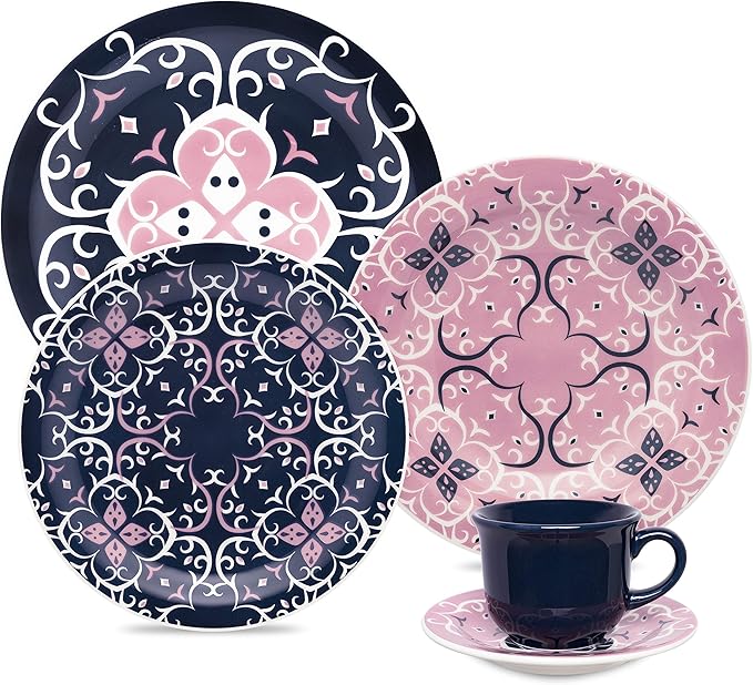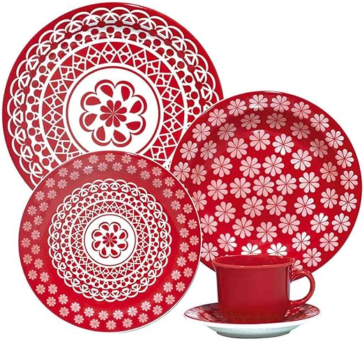 Aparelho de Jantar e Chá 20 Peças Oxford Daily Floreal Renda Branco/Vermelho